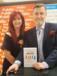 “Άνάμεσα σε ψεύτες”, ο τίτλος που πήρα μαζί μου από εκείνη τη βραδιά και ενώ το ξεφύλλιζα στην επιστροφή, η κυρία που καθόταν δίπλα μου στο μετρό, μου ψιθύρισε συνομωτικά: “Έτσι είναι οι άνθρωποι κοπέλα μου, ψεύτες. Καλά τα λέει το παλικάρι. Και να φανταστείς, εμένα με περνούσαν και για ηλίθια!”