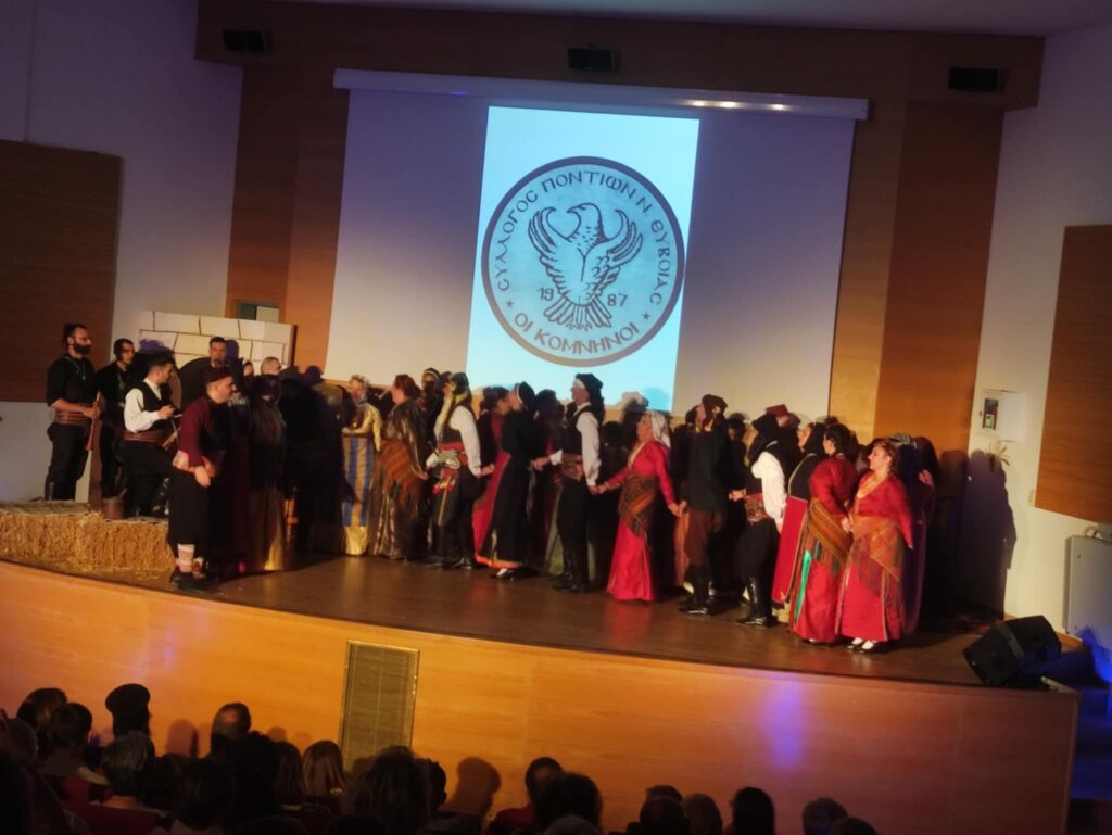 Ο ήχος της ποντιακής λύρας διαφορετικός συνδυασμένος με το νταούλι, το ζουρνά, το κλαρίνο και τη φλογέρα των Χρήστο Εμεξίδη – Ορφέα Κοσμίδη – Αλέξανδρο Μιμίδη Γιώργο Κεμεντζετζίδη, το τραγούδι του Νίκου Σακαρίδη, η χορευτική επιμέλεια του Γιώργου Κωνσταντή σε συνδυασμό με το κέφι των συμμετεχόντων, η επιμελημένη ενδυματολογική παρουσίαση των συμμετεχόντων και η σκηνοθετική άποψη του Νέστωρα Βαρυτιμίδη ο οποίος επιμελήθηκε και τα ηχητικά κείμενα – εικόνες της βραδιάς μετέτρεψαν τη βραδιά σε ένα εξαιρετικό μάθημα ιστορίας κι εγώ αποχωρώ ευχαριστώντας από καρδιάς όλους εκείνους που κατάφεραν να μετατρέψουν τη μουσικοχορευτική παράσταση τους σε μία απολαυστική ΙΣΤΟΡΙΚΗ μουσικοχορευτική παράσταση του Συλλόγου Ποντίων “Οι Κομνηνοί”.