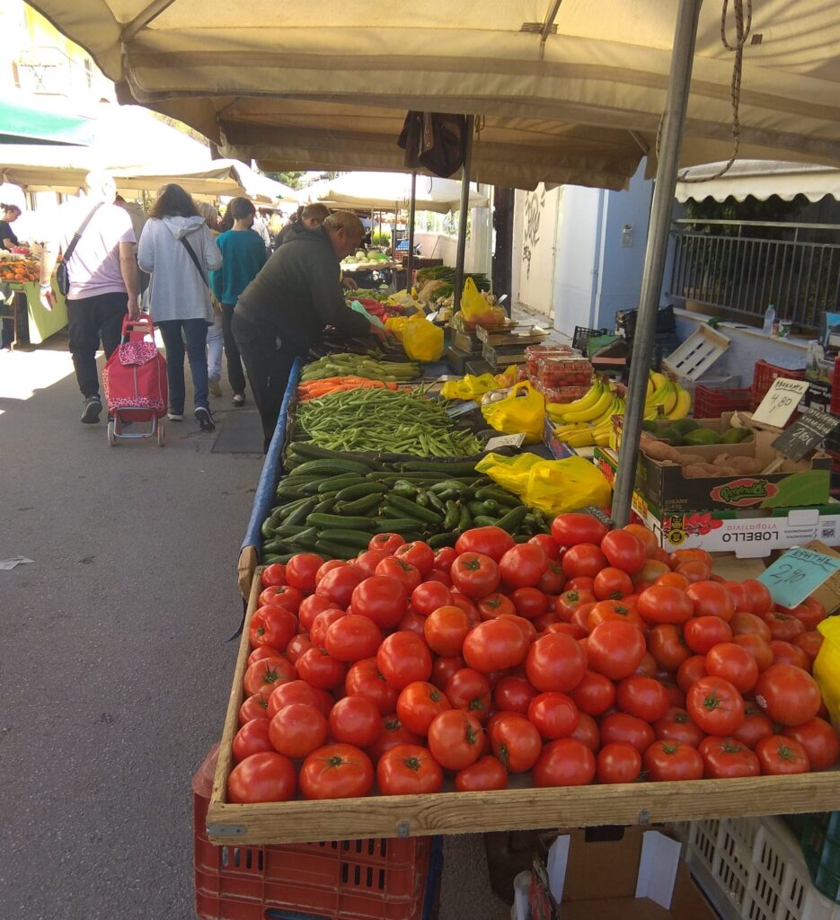 Το αυτοκινητάκι μου περιμένει εμένα με το αδειανό μου καροτσάκι, για το μικρό μου αναγκαίο περίπατο, μέχρι τη λαϊκή. Ανυπομονεί τόσο για τη στιγμή που η ατμόσφαιρα θα γεμίσει με μυρωδιές φρέσκων λαχανικών και φρούτων. Ναι αυτή τη φορά το σεργιάνι μου αφιερωμένο στο παζάρι χρωμάτων, οσμών και γεύσεων.